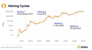 La última corrección en el precio de Bitcoin (BTC) está reforzando, y no debilitando, el tradicional ciclo de halving de 4 años que históricamente ha marcado el comportamiento del mercado del activo, según un nuevo informe de Kaiko Research.