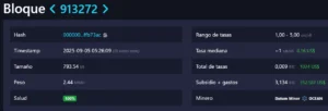 El hito en cuestión sucedió a la altura del bloque 913272, el cual pagó 0,009 BTC en tarifas y otorgó un subsidio más tarifas total de 3.134 BTC.